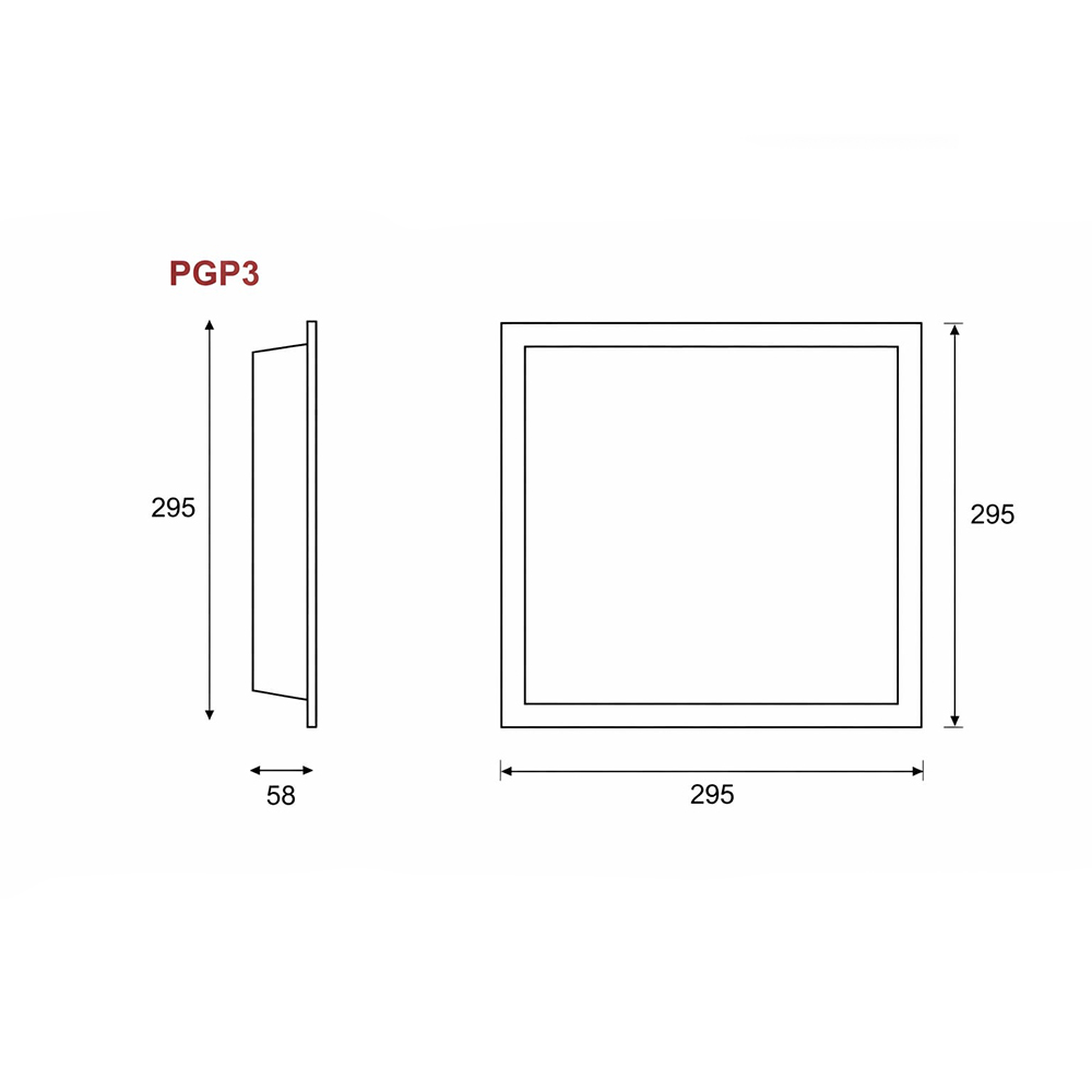 PGP-3030-12-NW 220–240V AC 20W 4000K (Natural White) Ra>80 1550 lm 295×295×58 280 mm 650 gr